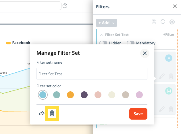 Step 1: Delete a Filter Set completely by clicking on the Filter Set's trash icon.