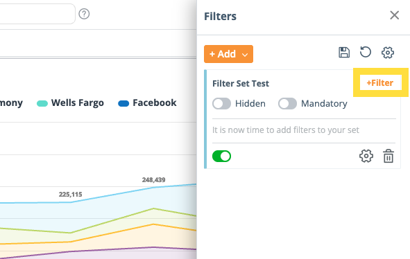 Step 1: Select +Filter to add filters to the newly created Filter Set.