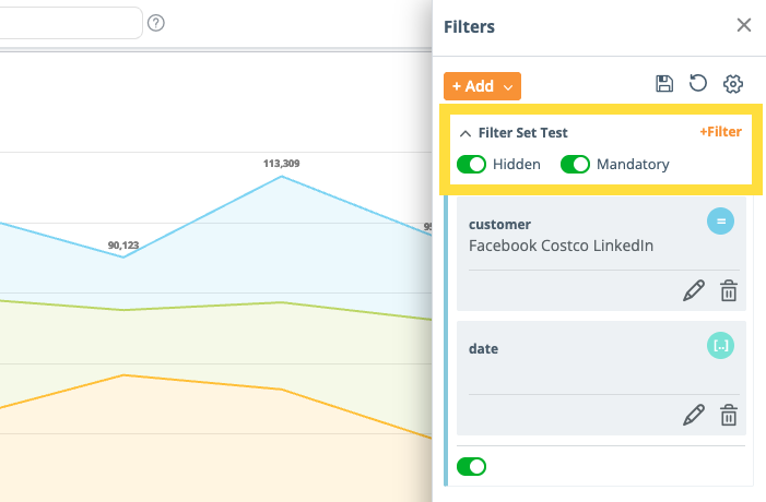 Filter Sets allow you to easily create a collection of defined dashboard filters that can be saved and reused across multiple dashboards, shared dashboards with public URLs, and shared with other users for enhanced collaboration and productivity. For example, you can have a Filter Set called Weekly North American Sales to look at specific sales performance for a particular region, dynamic date range, and specific product category.