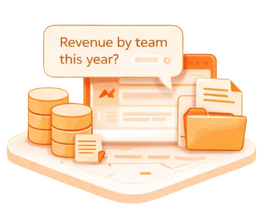 Chat seamlessly across structured datasets and unstructured documents in one interface. Ask questions in plain English to find answers, build visualizations, and create widgets, without switching tools or writing queries.